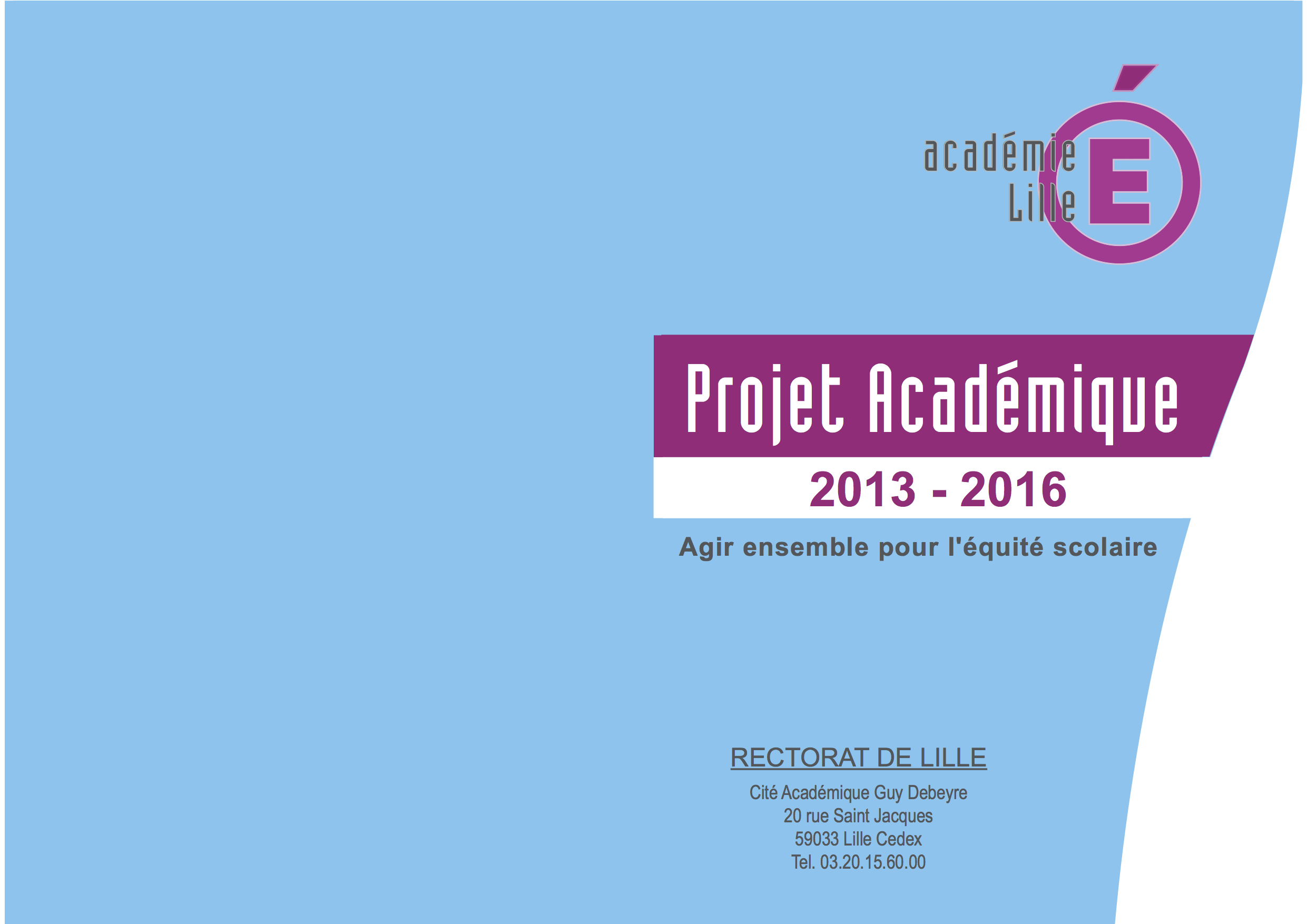 Intitulé "Agir ensemble pour l'équité scolaire", le projet académique lillois développe l'idée qu'un travail sur l’équité scolaire "ne peut être que le fruit d’un "agir ensemble". Ce sont tous les acteurs de l’éducation, quelle que soit la sphère où ils interviennent – de la maternelle au BTS -, quelle que soit la responsabilité qu’ils exercent, qui sont invités à œuvrer pour les mêmes objectifs".
